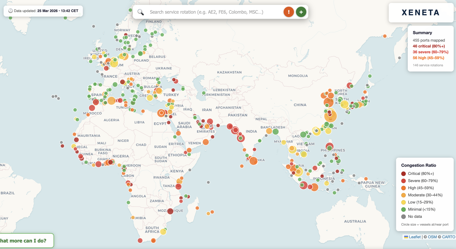 Over 80 percent of the world’s 454 ports mapped are deemed in critical status, 60-70 percent are severely congested, and 45-59% are considered highly congested.