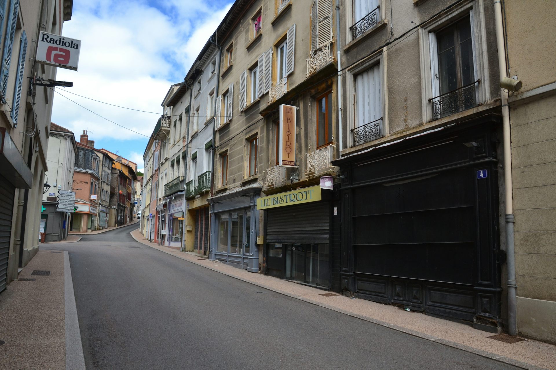 Thizy, Rhône, 2021. Des commerces vides le long de la rue principale, signe de la #désertification rurale et industrielle de ce bourg qui était autrefois un petit centre de production textile dans la campagne. Jeanne Menjoulet/Flickr, CC BY-NC-ND