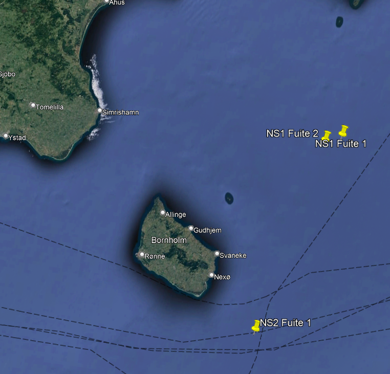 L’armée danoise a publié sur Twitter des photos et vidéos de trois bouillonnements à la surface de la mer Baltique repérés ce mardi. Ces trois jacuzzis géants mesurent de 200 mètres à 1 kilomètre de diamètre. Une vidéo provenant de la même source montre de grosses bulles remonter. Si une partie minime peut se dissoudre dans l’eau, « l’intégralité ou presque du gaz qui s’échappe se retrouve dans l’atmosphère », affirme Thomas Lauvaux, chercheur au Laboratoire des sciences du climat et de l’environnement.