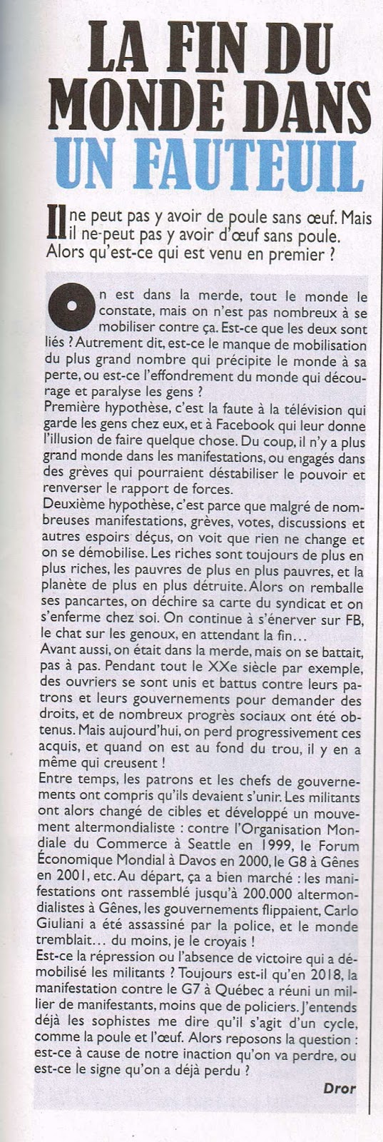– Un article sur les suites du mouvement au titre suggestif (« Le pire est-il à venir ? »)"