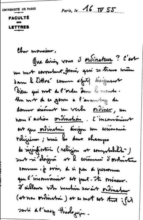 En 1955 François Girard, responsable en France de la promotion d’IBM, est chargé par sa direction de trouver un nom français pour ces toutes nouvelles machines américaines, les computers. Il adresse une lettre en ce sens, avec explications et brochures descriptives, à son ancien professeur Jacques Perret, un philologue agrégé de grammaire et docteur ès lettres.